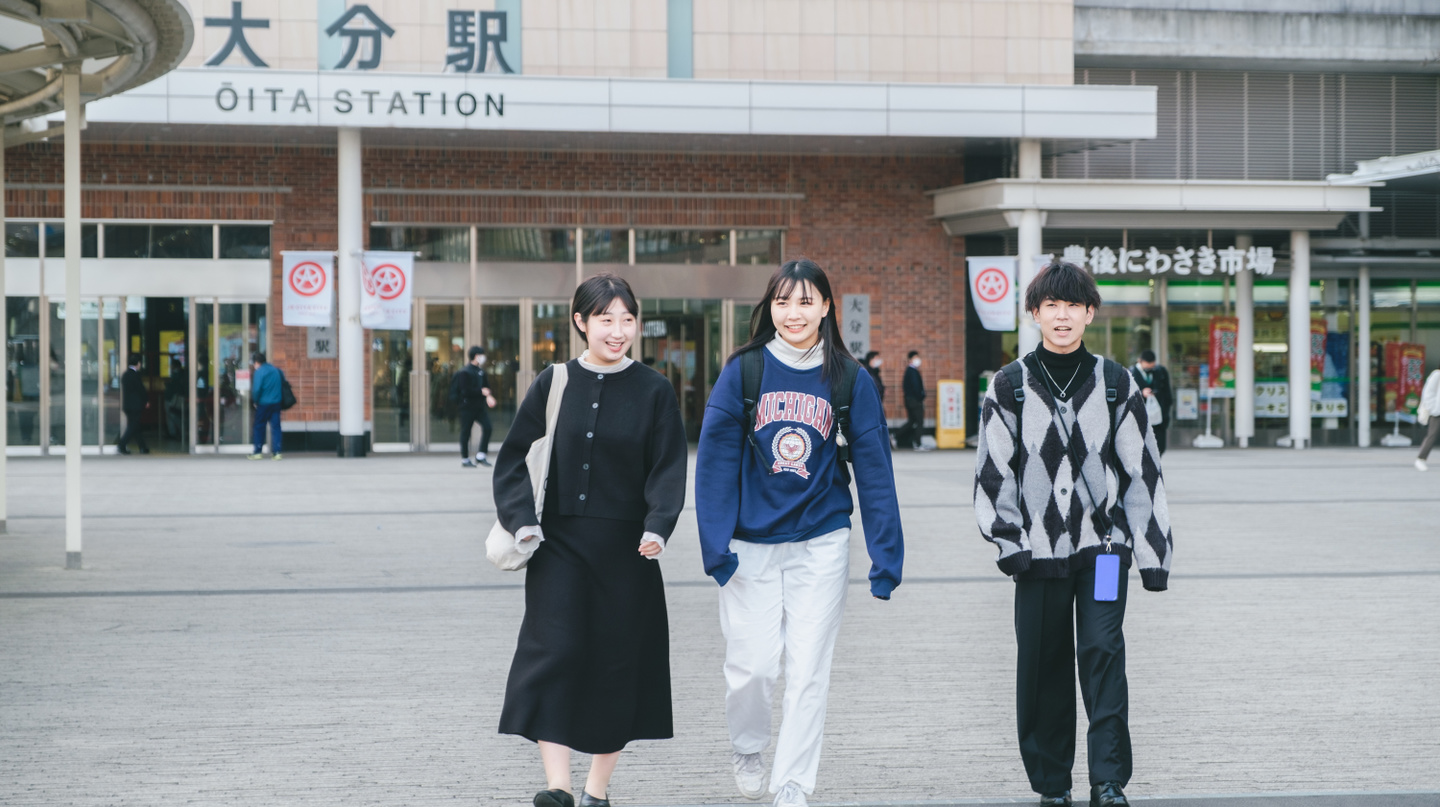 学校の位置はJR大分駅 上野の森口より徒歩2分!JRやバスなど、どの地域からでも登校しやすい位置にあります。