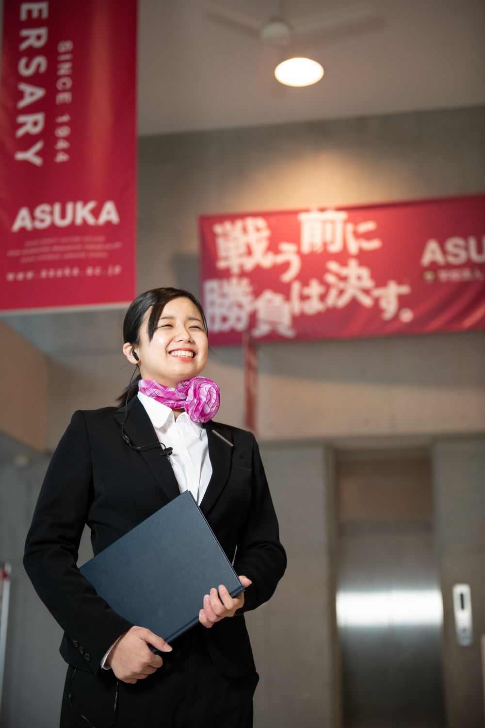 今後は「継続は深化」を掲げ、常に本物であることを目指し、学生に感動を与え、感謝の心を忘れずに、原点を心として、私、田中由視以下、教職員一丸となって明日香ブランドを構築していく所存でございます。